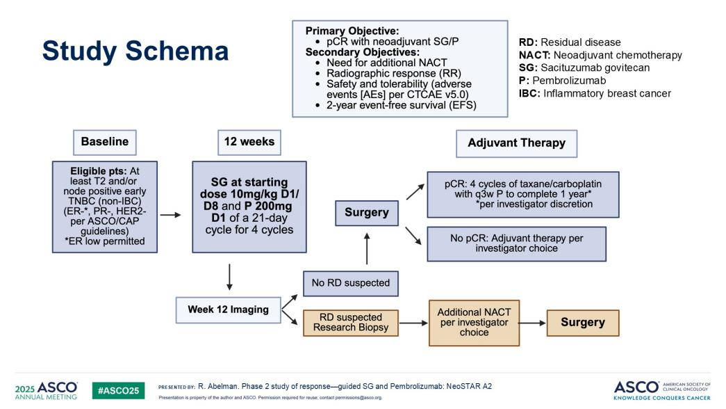 [4]Rachel Abelman,et al.A phase 2 study of response-guided neoadjuvant sacituzumab govitecan and pembrolizumab(SG/P)in patients with early-stage triple-negative breast cancer:Results from the NeoSTAR trial.ASCO 2025;Abstract#511