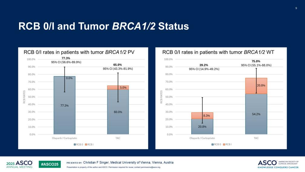 △NABCSG 45研究:BRCA突变状态患者的RCB0/I率
