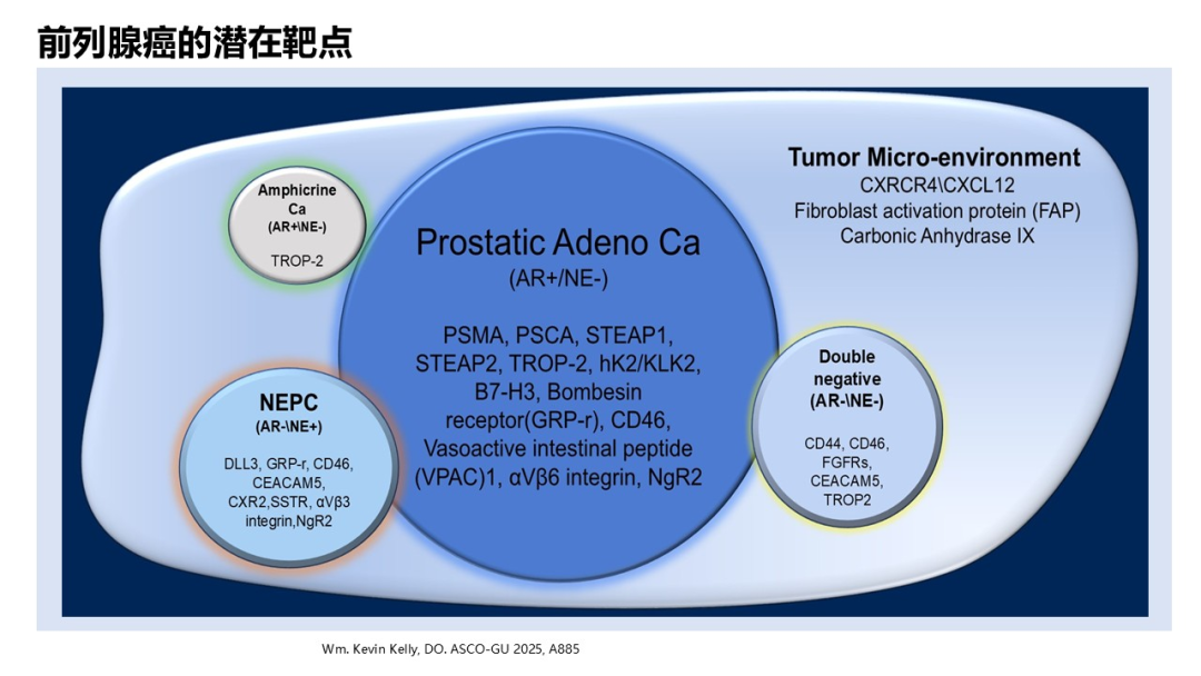陈教授进一步指出,传统腺癌亚型普遍表达PSMA、STEAP1、STEAP2、Trop-2及B7-H3等靶点,而NEPC和双阴性亚型则不表达PSMA,但双阴性亚型和双向分化亚型会表达Trop-2。因此,不同前列腺癌类型需针对其特异的分子标志物制定精准治疗策略。