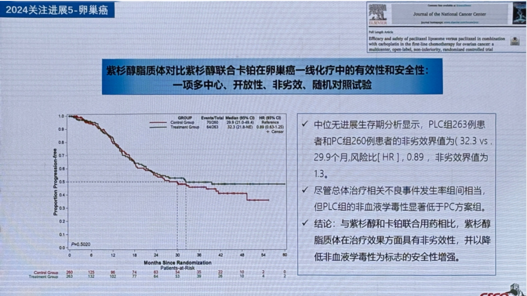 10.Li R,Zhang H,Li Q,et al.Efficacy and safety of paclitaxel liposome versus paclitaxel in combination with carboplatin in the first-line chemotherapy for ovarian cancer:A multicenter,open-label,non-inferiority,randomized controlled trial.J Natl Cancer Cent.2024;4(2):page.DOI:10.1016/j.jncc.2024.04.004