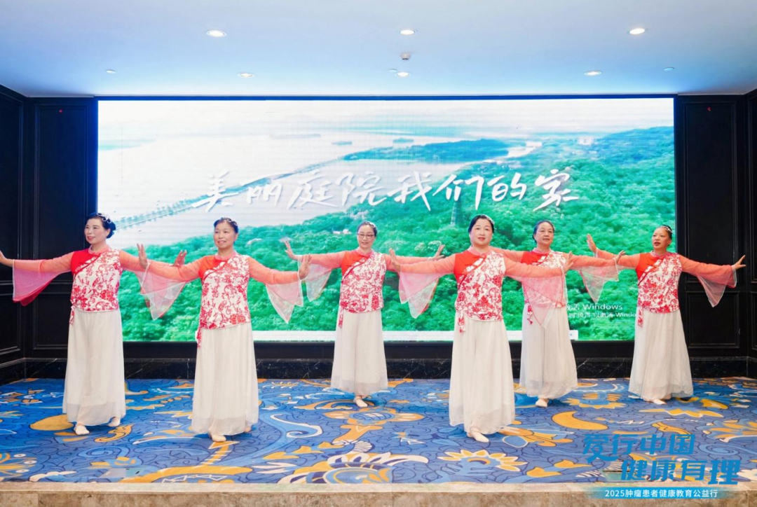 活动最后,杭州市癌症康复协会艺术团还带来了精彩的文艺表演。舞蹈《和美庭院,我们的家》舞姿优美,温婉曼妙,展现出肿瘤康复患者积极乐观的生活态度,为现场创造出温馨而充满希望的氛围。
