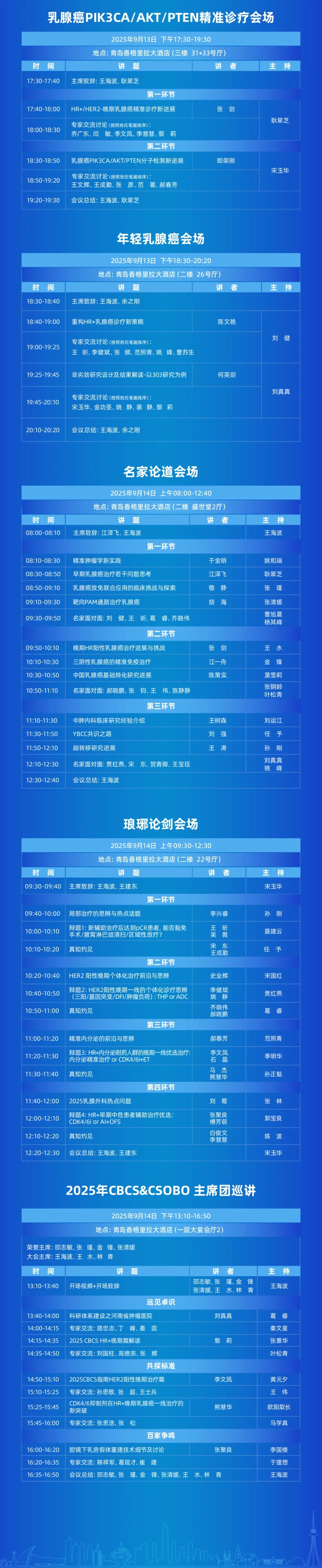 此外,本届大会还特别设置了多个专题会场,包括临床试验会场、HER2阳性与低表达乳腺癌会场、临床转化会场、HR阳性乳腺癌会场、三阴性乳腺癌会场等,旨在加强对中青年医师科研与原创能力的培养。值得一提的是,本届会议与CSCO BC指南巡讲、CBCS&CSOBO主席团巡讲等国内外品牌学术活动联动,进一步拓展了大会的学术辐射力和国际影响力,为乳腺专业同仁搭建了更高水平的交流平台,最终使广大患者受益。