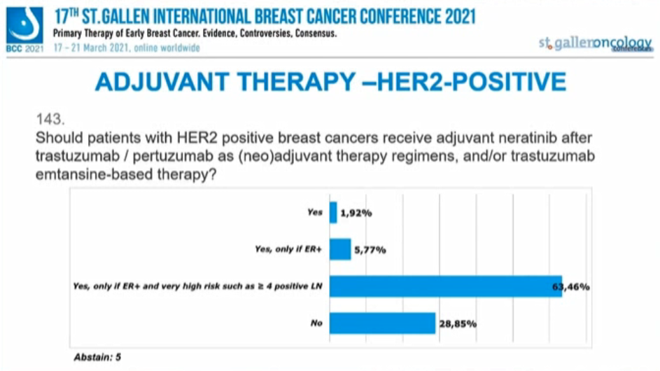 HER2+患者在曲妥珠单抗/帕妥珠单抗(新)辅助治疗,和/或T-DM1治疗后,是否应该接受奈拉替尼辅助治疗?