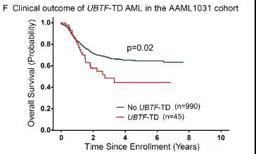 图1:UBTF-TD与儿童AML复发相关,为不良预后因素