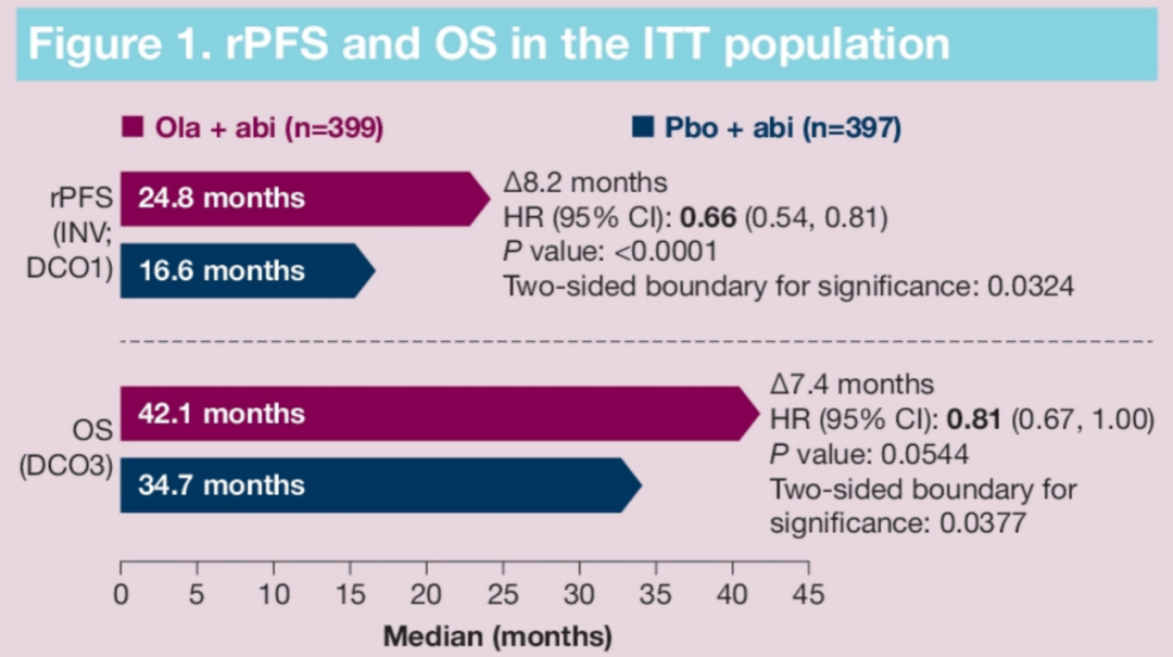 △PROpel研究既往报道ITT人群(未经HRR选择)的rPFS和OS结果